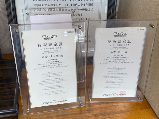 また、当店では全てのキーパーコーティングに施工証明書を発行を実施しております。