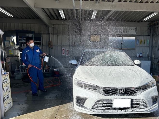 ①カーメンテナンス店に専用のコーティング場を併設する事により、土地代をおさえることに成功!